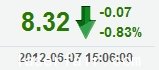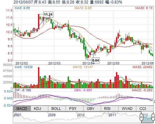| 今 開: | 8.43 | 成交量: | 6892手 | 振 幅: | 3.22% |