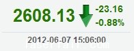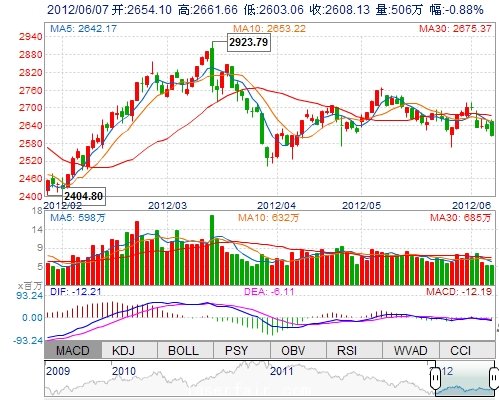 今 開: 2654.10 最 高: 2661.66 最 低: 2603.06 振 幅: 2.23% 昨 收: 2631.28 成交量: 5060731手 成交額: 690128.42萬(wan) 換手率: --