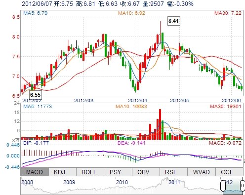 今 開: 6.75 成交量: 9507手 振 幅: 2.69% 最 高: 6.81 成交額: 640.12萬(wan) 換手率: 0.35% 最 低: 6.63 總市值: 19.01億(yi) 市淨率: 3.05 昨 收: 6.69 流通市值: ...