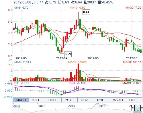 今 開: 6.77 成交量: 9037手 振 幅: 2.70% 最 高: 6.79 成交額: 604.48萬(wan) 換手率: 0.33% 最 低: 6.61 總市值: 18.92億(yi) 市淨率: 3.03 昨 收: 6.67 流通市值: ...