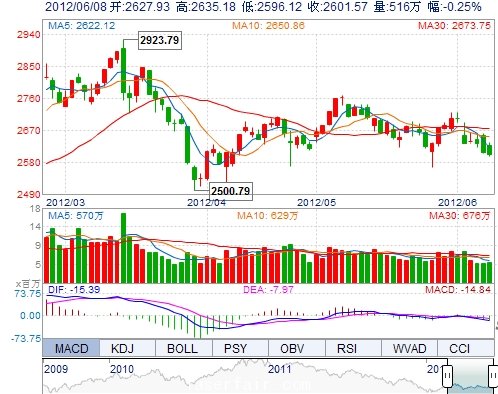 | 昨 收: | 2608.13 | 成交量: | 5158659手 |