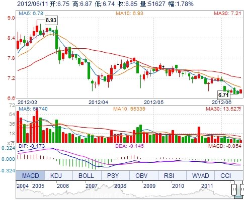 今 開: 6.75 成交量: 51627手 振 幅: 1.93% 最 高: 6.87 成交額: 3517.33萬(wan) 換手率: 0.55% 最 低: 6.74 總市值: 71.54億(yi) 市淨率: 2.40 昨 收: 6.73 流通市值...