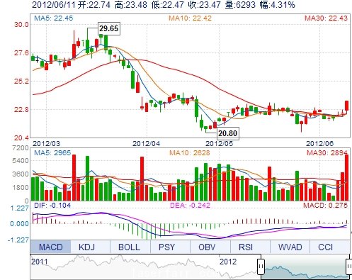 | 今 開: | 22.74 | 成交量: | 6292手 | 振 幅: | 4.49% |