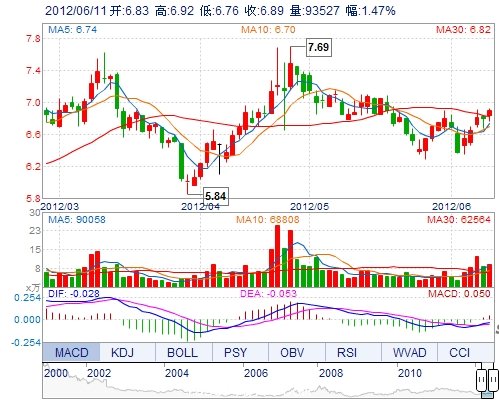 | 今 開: | 6.83 | 成交量: | 93527手 | 振 幅: | 2.36% |
