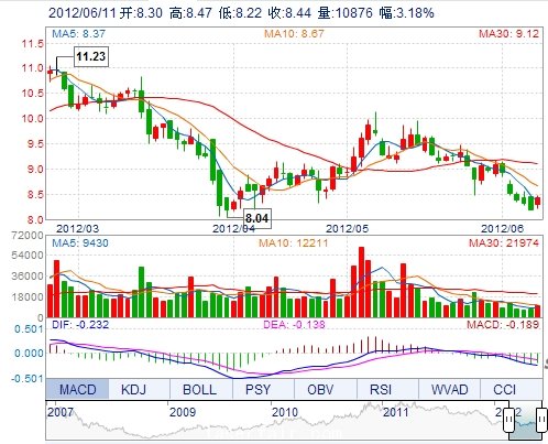 | 今 開: | 8.30 | 成交量: | 10876手 | 振 幅: | 3.06% |