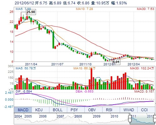 | 最 低: | 6.80 | 總市值: | 71.65億(yi) | 市淨率: | 2.41 |