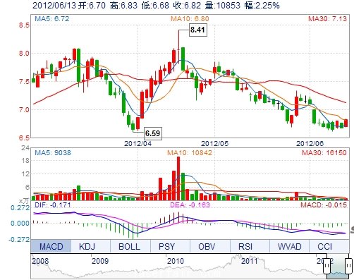 今 開: 6.70 成交量: 10852手 振 幅: 2.25% 最 高: 6.83 成交額: 735.20萬(wan) 換手率: 0.39% 最 低: 6.68 總市值: 19.44億(yi) 市淨率: 3.11 昨 收: 6.67 流通市值:...