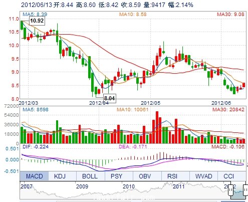 | 今 開: | 8.44 | 成交量: | 9417手 | 振 幅: | 2.14% |