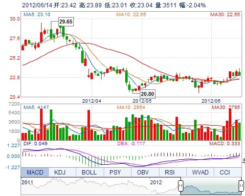 | 今 開: | 23.42 | 成交量: | 3510手 | 振 幅: | 3.74% |