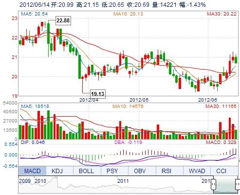 | 今 開: | 20.99 | 成交量: | 14221手 | 振 幅: | 2.38% |