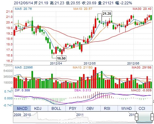 今 開: 21.19 成交量: 21120手 振 幅: 3.21% 最 高: 21.23 成交額: 4404.43萬(wan) 換手率: 1.03% 最 低: 20.55 總市值: 61.59億(yi) 市淨率: 5.07 昨 收: 21.16 流通...
