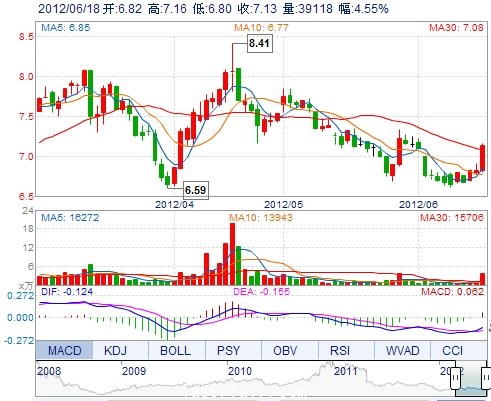 | 今 開: | 6.82 | 成交量: | 39117手 | 振 幅: | 5.28% |