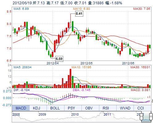 | 今 開: | 7.13 | 成交量: | 31885手 | 振 幅: | 2.38% |