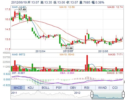 | 今 開: | 13.07 | 成交量: | 7684手 | 振 幅: | 2.69% |