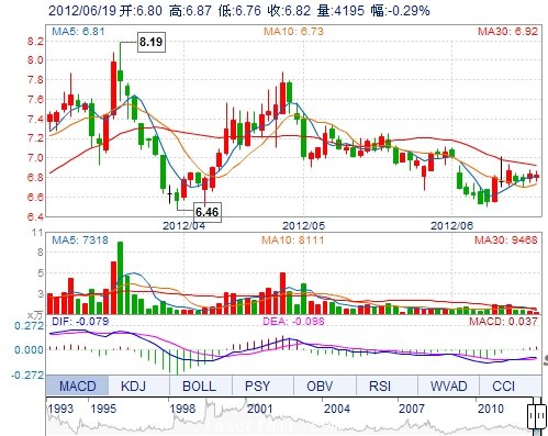 | 今 開: | 6.80 | 成交量: | 4194手 | 振 幅: | 1.61% |