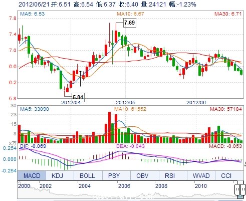 | 今 開: | 6.51 | 成交量: | 24121手 | 振 幅: | 2.62% |
