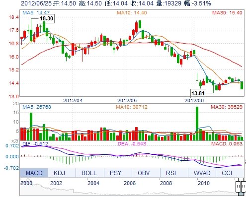 今 開: 14.50 成交量: 19329手 振 幅: 3.16% 最 高: 14.50 成交額: 2748.16萬(wan) 換手率: 0.43% 最 低: 14.04 總市值: 62.56億(yi) 市淨率: 2.37 昨 收: 14.55 流通...