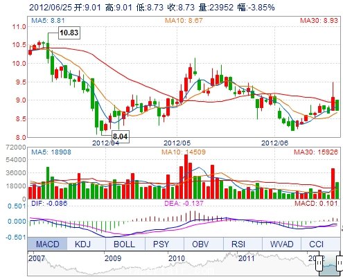 今 開: 9.01 成交量: 23951手 振 幅: 3.08% 最 高: 9.01 成交額: 2118.67萬(wan) 換手率: 1.23% 最 低: 8.73 總市值: 17.39億(yi) 市淨率: 3.61 昨 收: 9.08 流通市值...