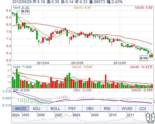 | 今 開: | 6.18 | 成交量: | 88673手 | 振 幅: | 4.05% |