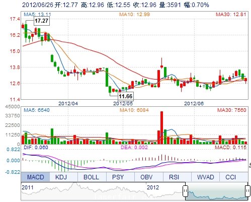 | 今 開: | 12.77 | 成交量: | 3591手 | 振 幅: | 3.19% |