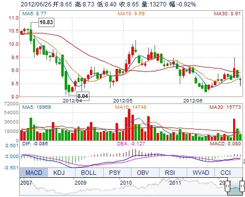 | 今 開: | 8.65 | 成交量: | 13270手 | 振 幅: | 3.78% |