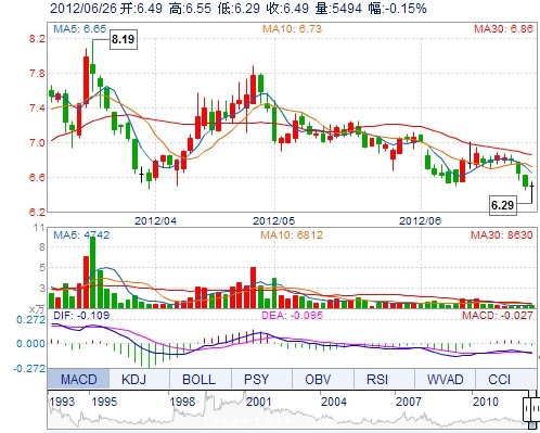 | 今 開: | 6.49 | 成交量: | 5493手 | 振 幅: | 4.00% |