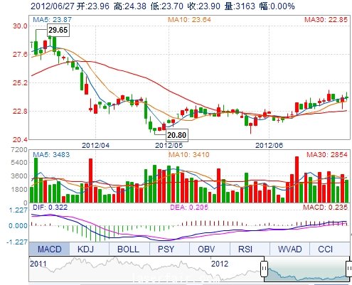 | 今 開: | 23.96 | 成交量: | 3162手 | 振 幅: | 2.85% |