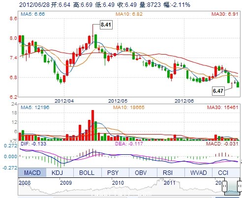 | 今 開: | 6.64 | 成交量: | 8722手 | 振 幅: | 3.02% |