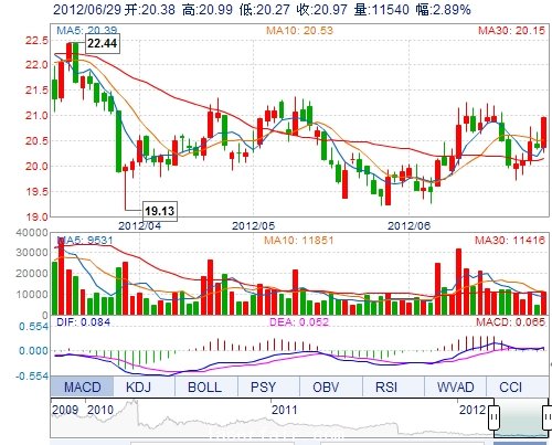| 最 高: | 20.99 | 成交額: | 2389.88萬(wan) | 換手率: | 0.96% |