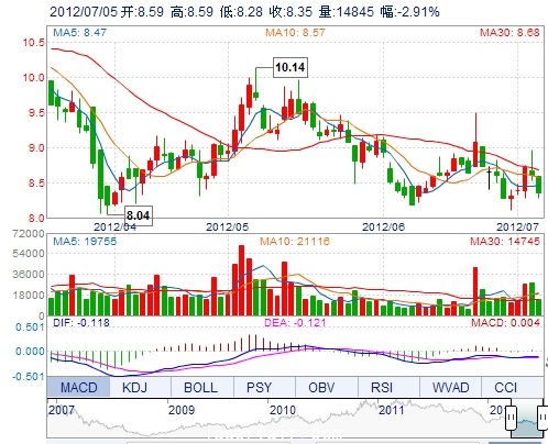 | 今 開: | 8.59 | 成交量: | 14845手 | 振 幅: | 3.60% |