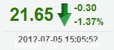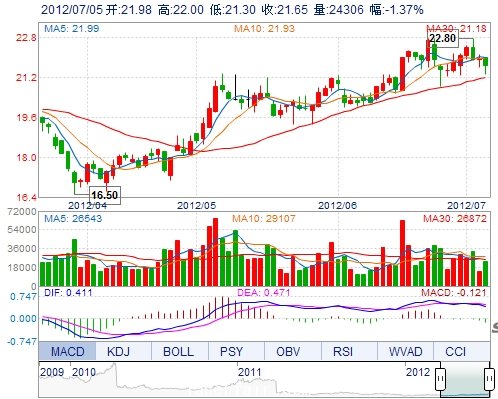 今 開: 21.98 成交量: 24306手 振 幅: 3.19% 最 高: 22.00 成交額: 5250.20萬(wan) 換手率: 1.19% 最 低: 21.30 總市值: 64.44億(yi) 市淨率: 5.31 昨 收: 21.95 流通...