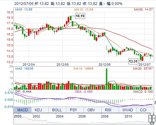 今 開: -- 成交量: -- 振 幅: -- 最 高: -- 成交額: -- 換手率: -- 最 低: -- 總市值: 61.58億(yi) 市淨率: 2.33 昨 收: 13.82 流通市值: 61.58億(yi) 市盈率 TTM :...