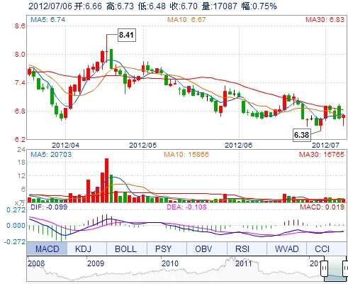 最 低: 6.48 總市值: 19.10億(yi) 市淨率: 3.06