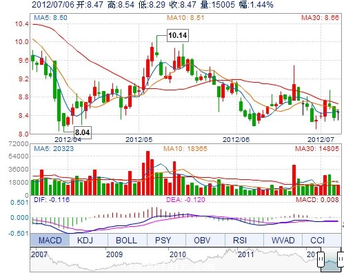 | 今 開: | 8.47 | 成交量: | 15005手 | 振 幅: | 2.99% |