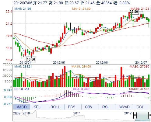 | 今 開: | 21.77 | 成交量: | 40364手 | 振 幅: | 5.22% |