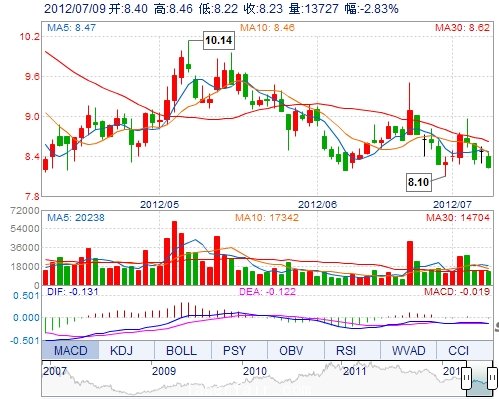今 開: 8.40 成交量: 13727手 振 幅: 2.83% 最 高: 8.46 成交額: 1142.22萬(wan) 換手率: 0.71% 最 低: 8.22 總市值: 16.40億(yi) 市淨率: 3.40 昨 收: 8.47 流通市值...