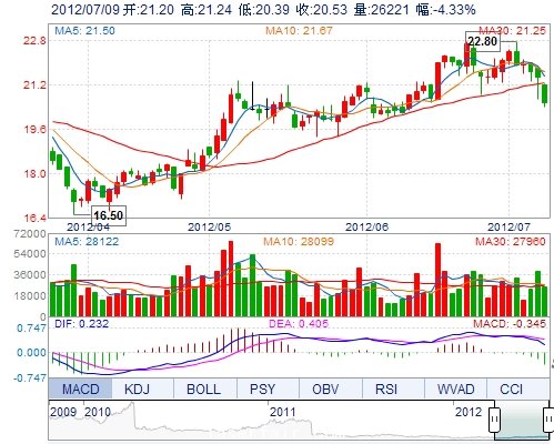| 今 開: | 21.20 | 成交量: | 26221手 | 振 幅: | 3.96% |