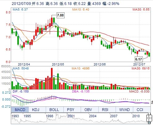 | 今 開: | 6.36 | 成交量: | 4369手 | 振 幅: | 2.81% |