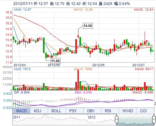 | 昨 收: | 12.46 | 流通市值: | 4.18億(yi) | 市盈率TTM: | 41.00 |