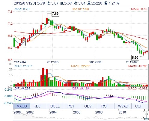 | 今 開: | 5.79 | 成交量: | 25220手 | 振 幅: | 3.47% |