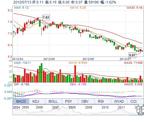 今 開: 6.11 成交量: 59195手 振 幅: 1.62% 最 高: 6.16 成交額: 3614.57萬(wan) 換手率: 0.63% 最 低: 6.06 總市值: 63.39億(yi) 市淨率: 2.13 昨 收: 6.17 流通市值...