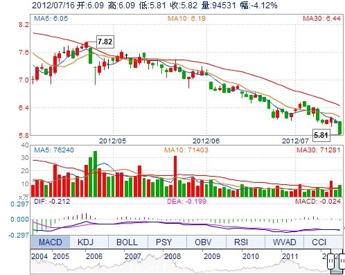 | 今 開: | 6.09 | 成交量: | 94531手 | 振 幅: | 4.61% |
