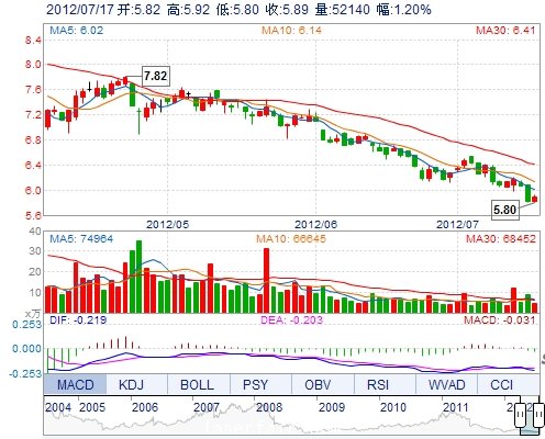 | 最 低: | 5.80 | 總市值: | 61.51億(yi) | 市淨率: | 2.07 |