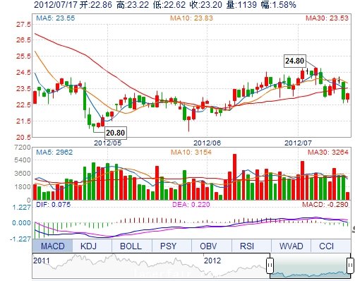 | 今 開: | 22.86 | 成交量: | 1139手 | 振 幅: | 2.63% |