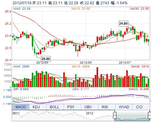 | 今 開: | 23.11 | 成交量: | 2743手 | 振 幅: | 3.58% |