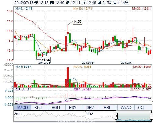 | 昨 收: | 12.31 | 流通市值: | 4.15億(yi) | 市盈率TTM: | 40.71 |