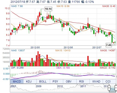 今 開: 7.67 成交量: 11766手 振 幅: 2.88% 最 高: 7.67 成交額: 888.87萬(wan) 換手率: 0.61% 最 低: 7.45 總市值: 15.20億(yi) 市淨率: 3.15 昨 收: 7.64 流通市值:...
