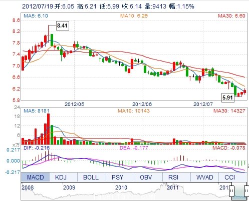 今 開: 6.05 成交量: 9413手 振 幅: 3.62% 最 高: 6.21 成交額: 577.24萬(wan) 換手率: 0.34% 最 低: 5.99 總市值: 17.50億(yi) 市淨率: 2.80 昨 收: 6.07 流通市值: ...