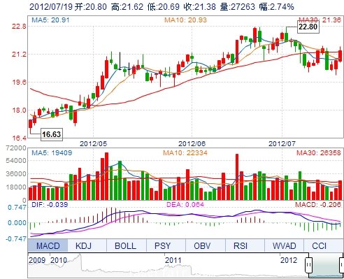 | 今 開: | 20.80 | 成交量: | 27263手 | 振 幅: | 4.47% |