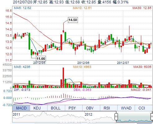 | 今 開: | 12.85 | 成交量: | 4156手 | 振 幅: | 1.95% |